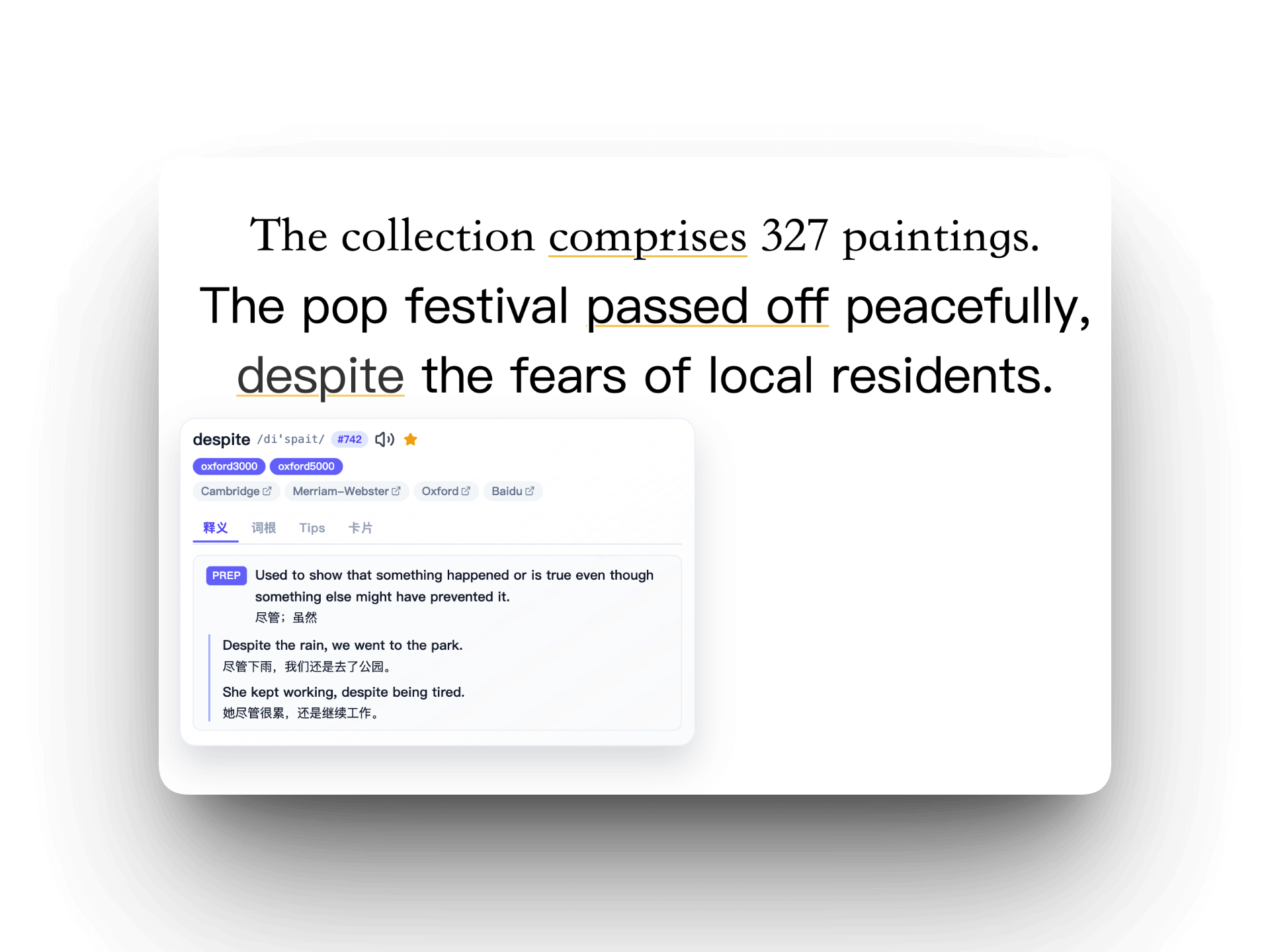 网页翻译 · 划词翻译 · 生词高亮 · 单词收藏